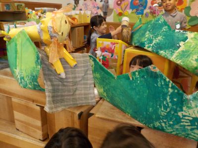 おたのしみ会で、人形劇団ひとみ座さんの人形劇を観劇しました。