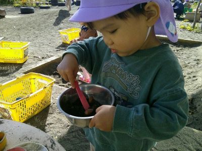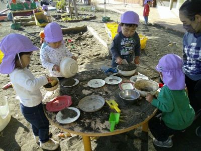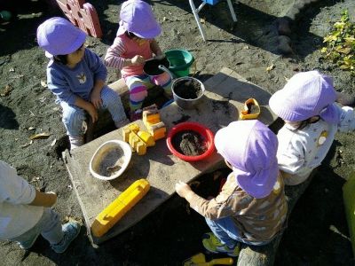 風が肌寒く感じる日も増えてきましたが、日が当たるとポカポカと暖かい園庭で