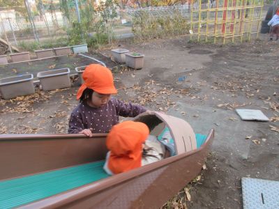 トンネルのようにして遊んでいる姿を見て