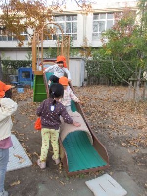 すべり台に列ができていました。
