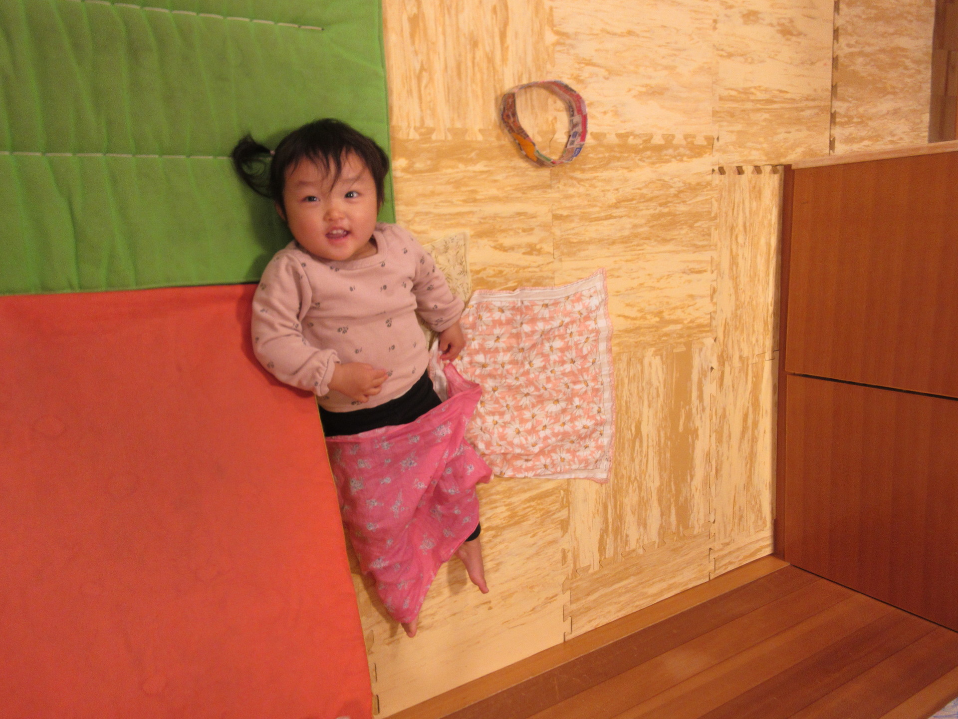 置いて食べる真似をしていました。ハンカチ一枚が子ども達の表現の幅を広げてくれることを感じます。
